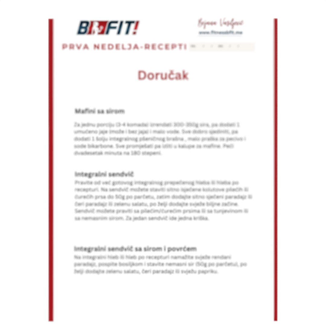Svi naši planovi prave se individualno – nema univerzalnog jelovnika za sve. Da bismo ti sastavili obroke koji ti stvarno odgovaraju, važno je da znamo tvoje navike, ciljeve i namirnice koje voliš ili ne voliš. Zato te molimo da prije narudžbe ispuniš kratki upitnik – on nam daje sve potrebne informacije da tvoj plan bude skrojen baš po tvojoj mjeri.